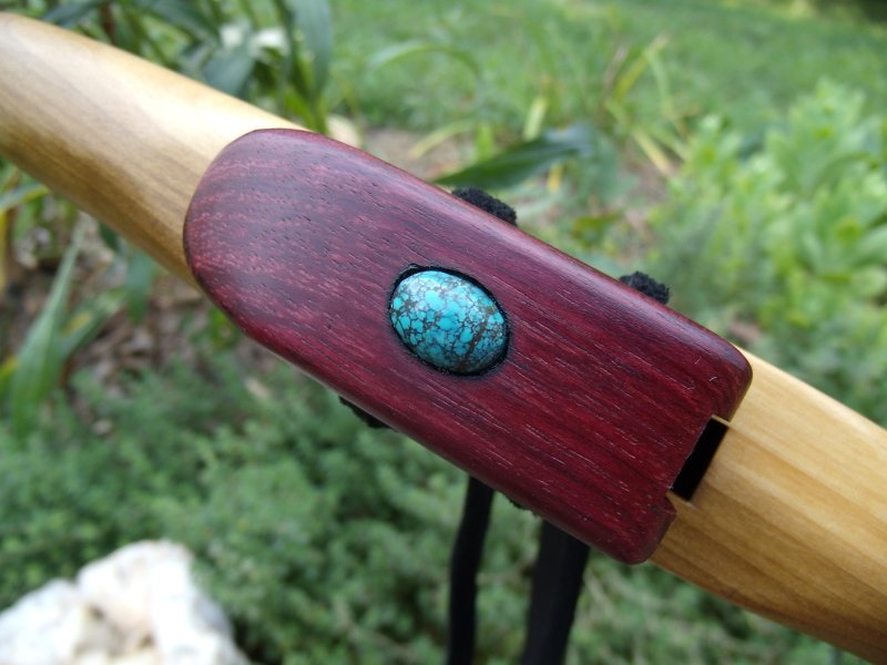 Flute #10 of 2023 | Key: Mid F# (Standard tuning) | Tulip Poplar Flute | Purpleheart Block w/ Turquoise Cabochon | Buckskin Wrap | Length: 22.25″ | Price: SOLD