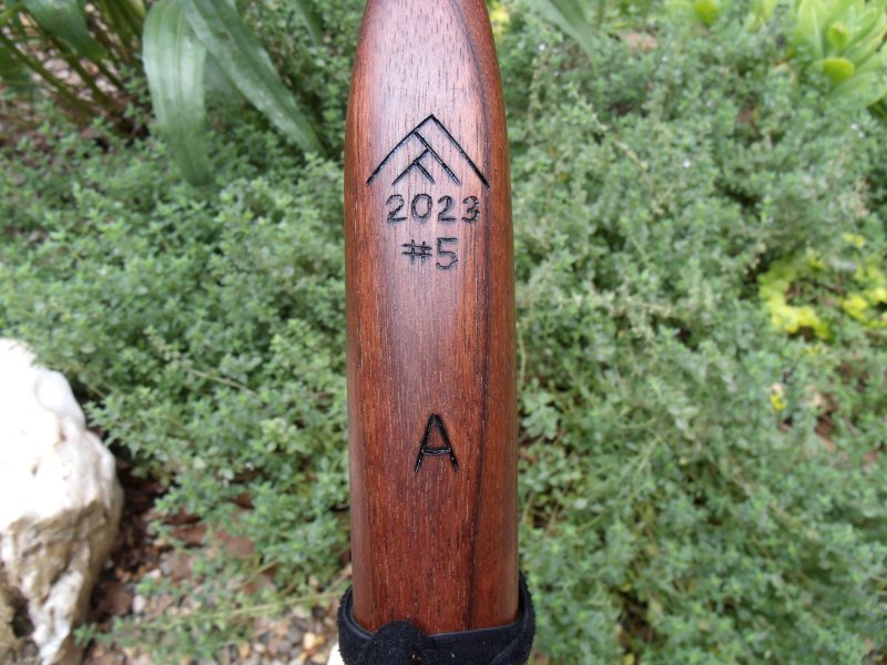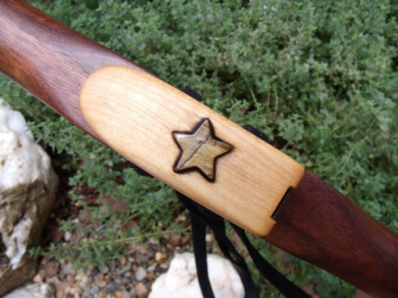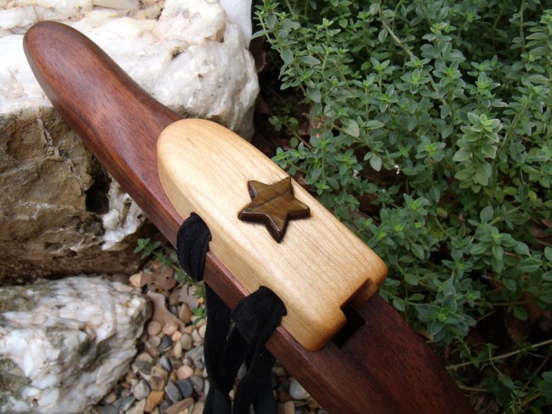 Flute #5 of 2023 | Key: Mid A (Standard tuning) | Black Walnut Flute | Maple Block w/ Tiger’s Eye Star | Length: 19.5″ | Price: $315.00 SOLD