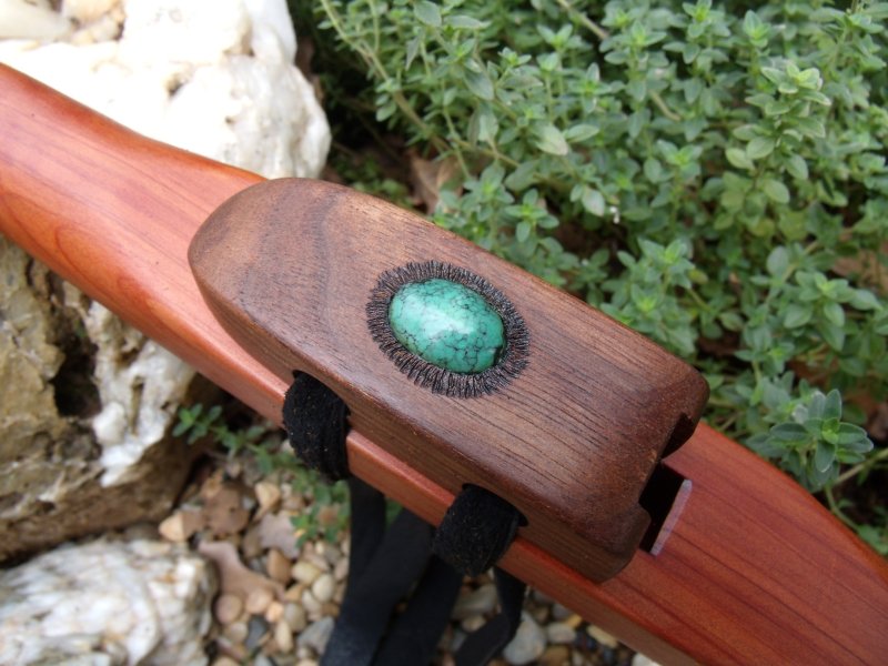 Flute #6 of 2023 | Key: Mid A (Standard tuning) | Eastern Red Cedar Flute | Black Walnut Block w/ Turquoise Cabochon | Length: 19.5″ | Price: SOLD