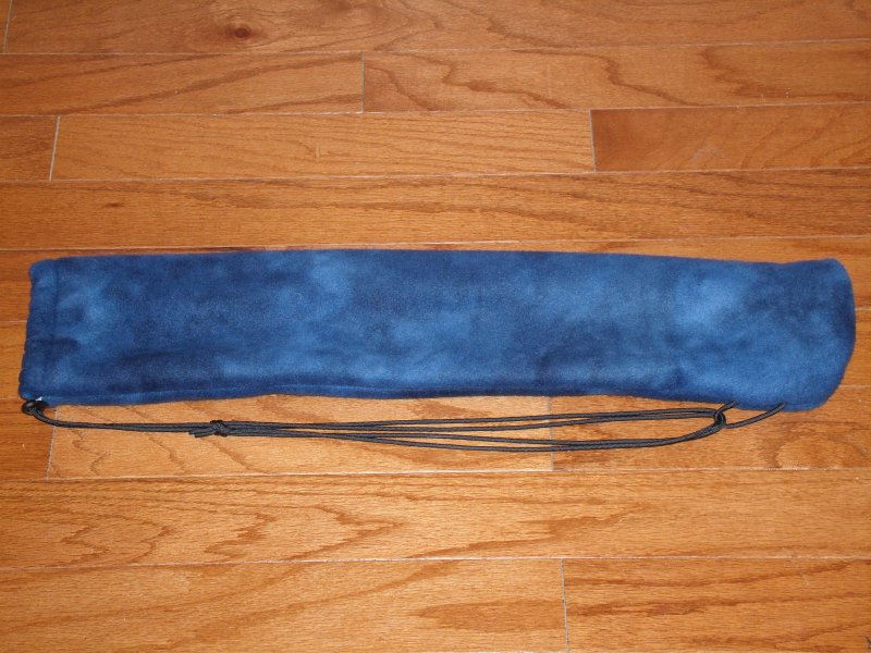 These bags are hand made by my wife, Christine. They have an outer layer of fleece or flannel and an inner layer of faux sherpa for padding. They have spring-loaded cord stops to keep the bags closed and shoulder straps made from 550lb paracord. These are beautiful bags, and they are very well made. Custom sizes are available.